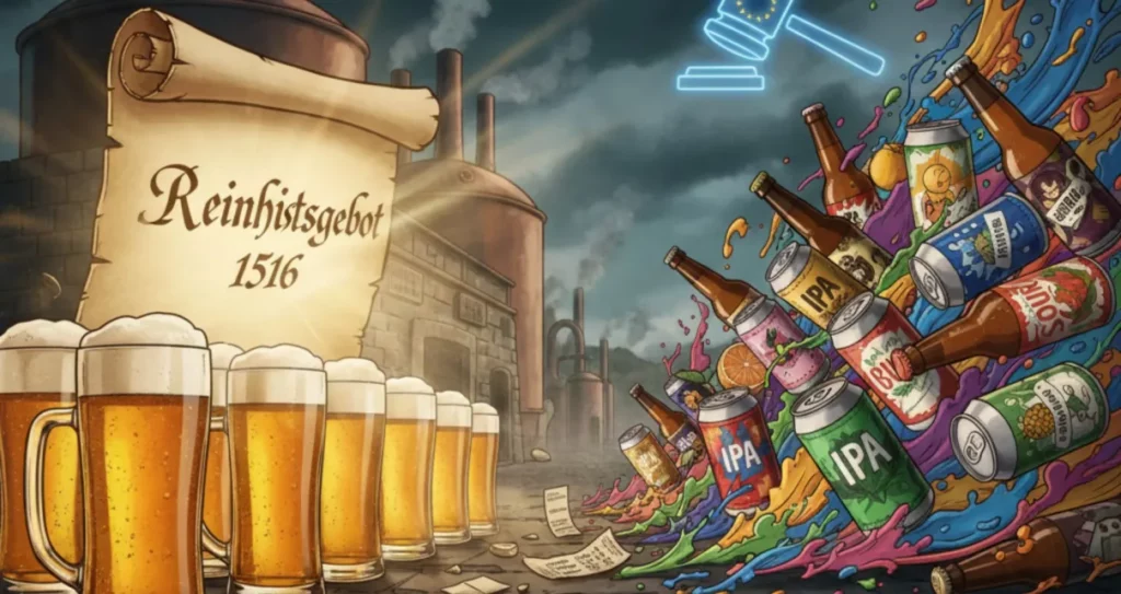 Le fameux Reinheitsgebot, dont je vous avais conté l’histoire dans un article dédié il y a plusieurs années, est toujours une fierté de nos voisins germaniques. Pourtant, cette fameuse loi, de plus de 500 ans maintenant, a été l’acteur d’une saga judiciaire très intéressante suite à la création du libre-échange européen.